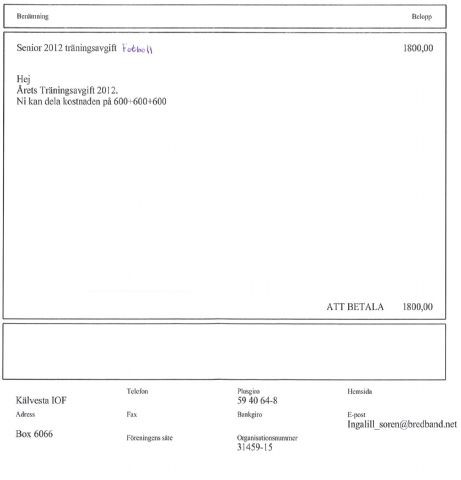 1800 är Träningsavgiften för 2012. Det är ok att dela upp den på 3 inbetalningar. /KaSören